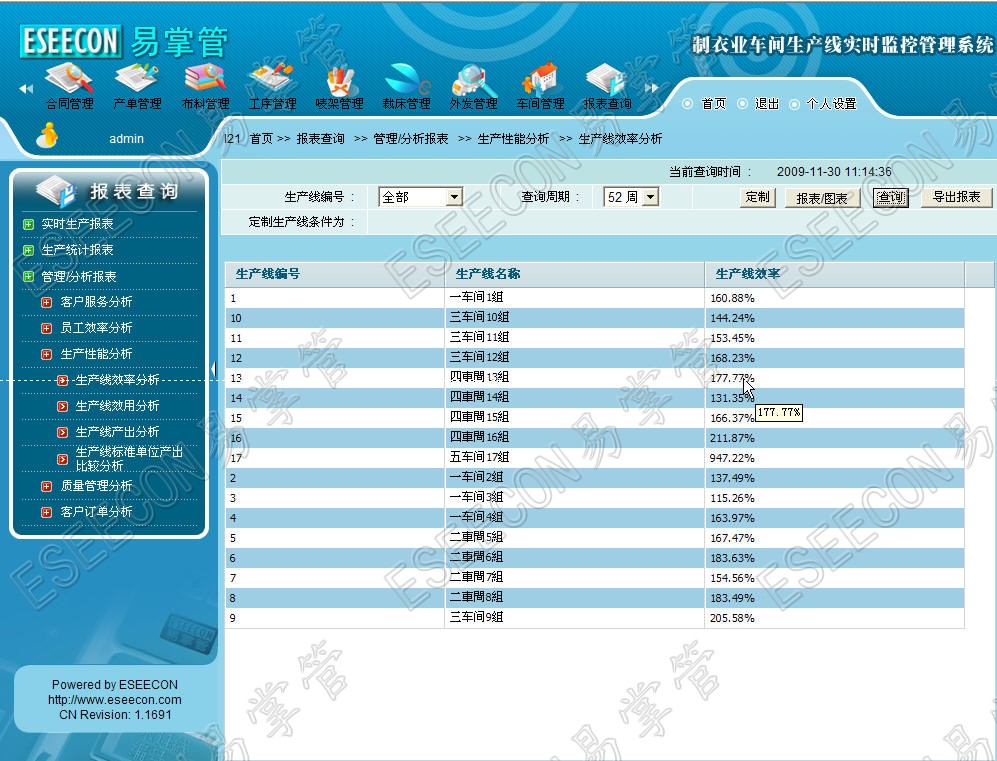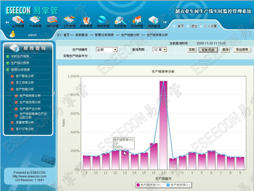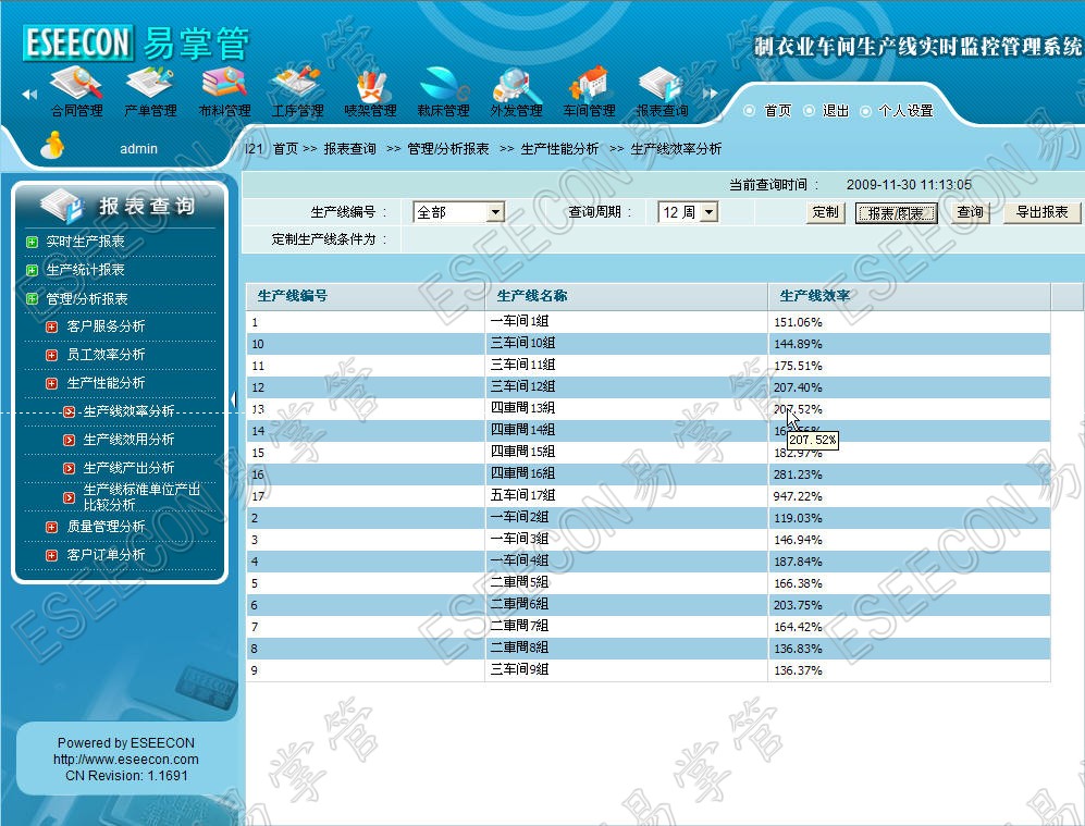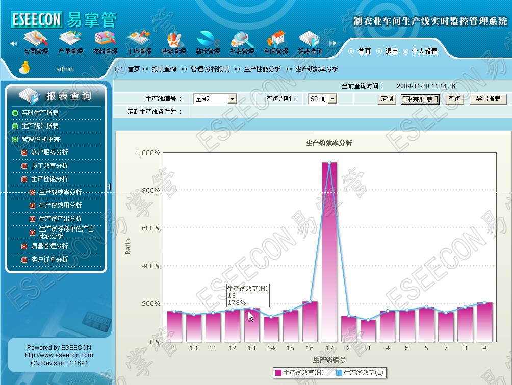 生产线效率分析表是用于查询12周或52周内各生产线的生产效率的比较情况。